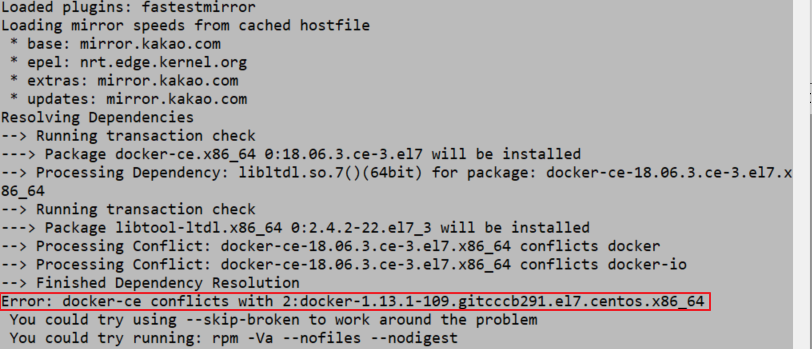 Docker 설치할 때 # yum -y install docker 하지말고, 다음과 같이 실행