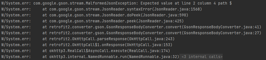 Android에서 Retrofit 사용 중에 다음 🚨에러가 발생했다.