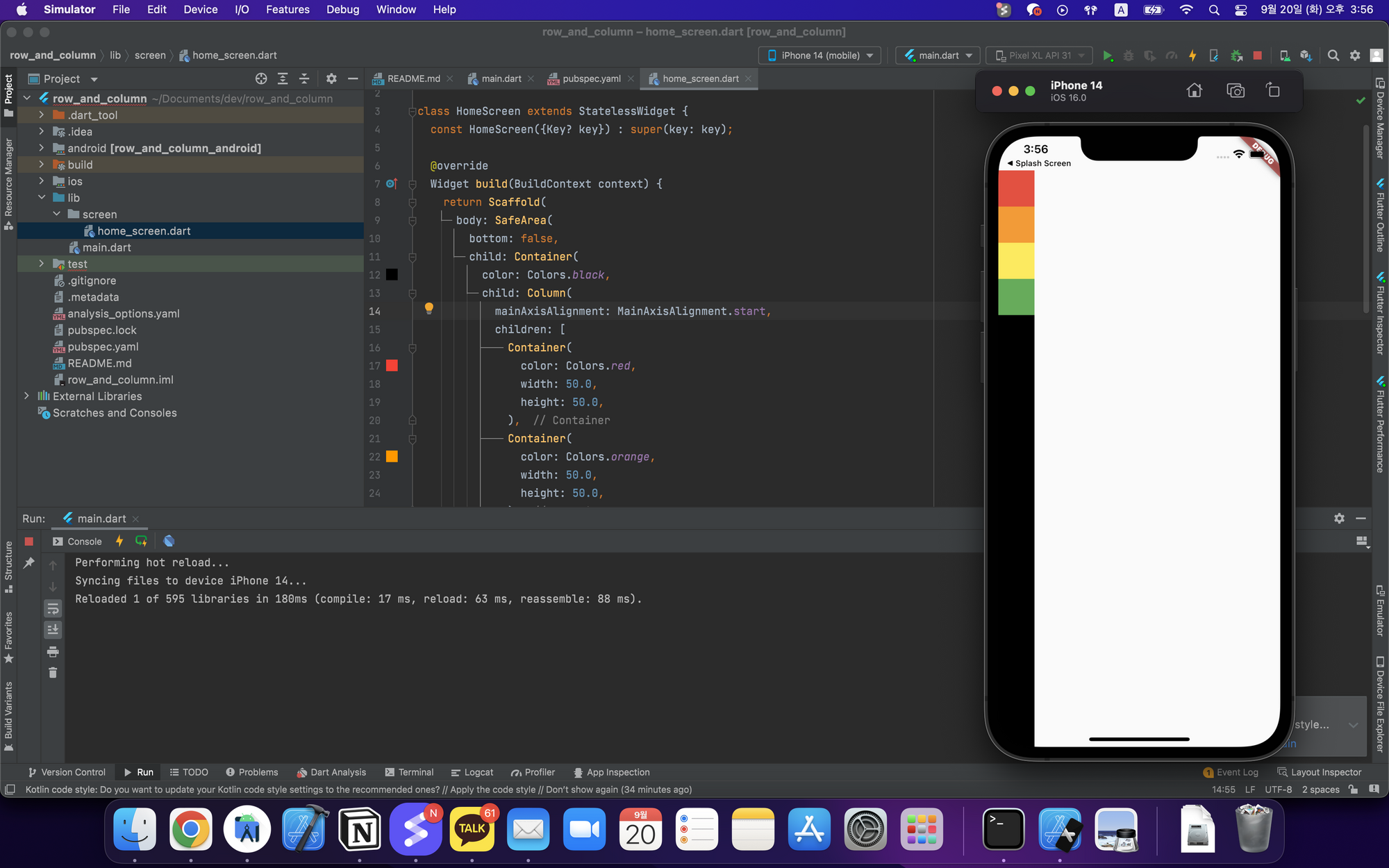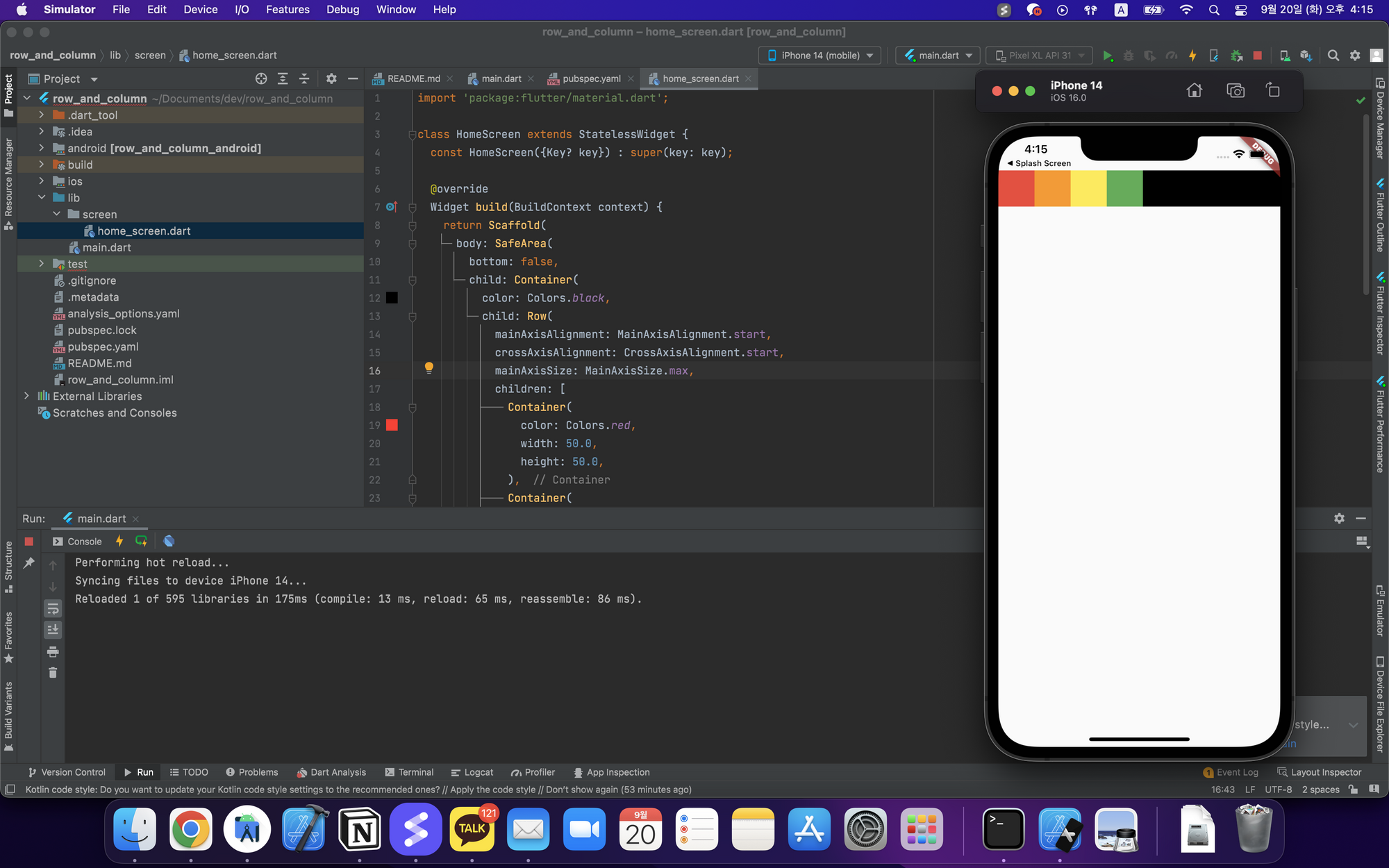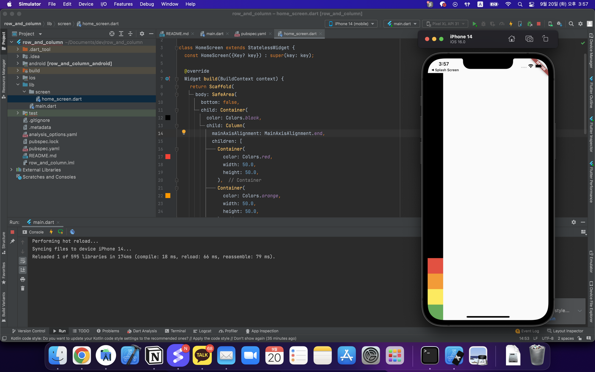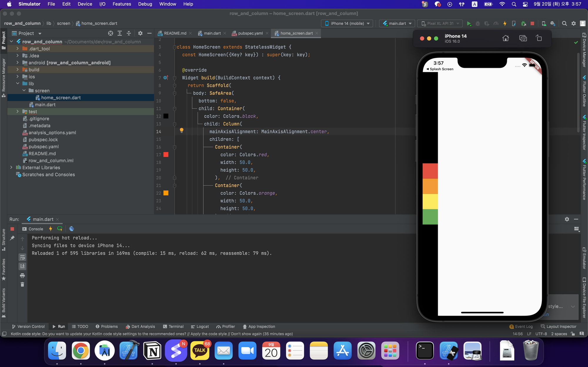 말 그대로 수평으로 위젯들을 나열해야할 때는 Row wiget을 사용하고, 수직으로 나열해야할 때는 Column widget을 사용한다.